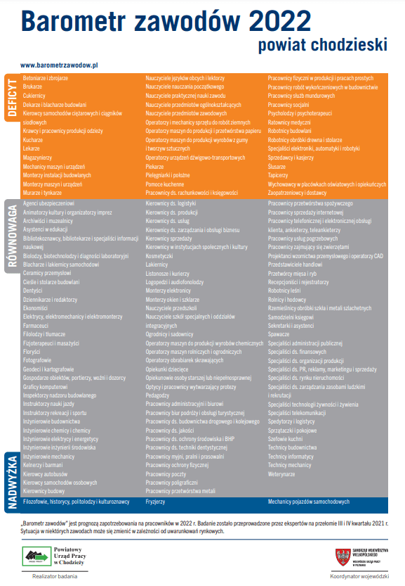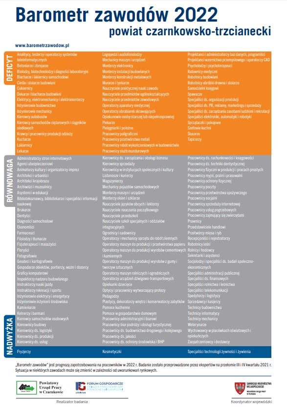 Barometr zawodów jest badaniem ogólnopolskim, realizowanym przez powiatowe urzędy pracy we współpracy z prywatnymi agencjami zatrudnienia i instytucjami zajmującymi się popularyzacją szkolnictwa zawodowego i kształcenia dualnego oraz doradztwem zawodowym na lokalnych rynkach pracy.