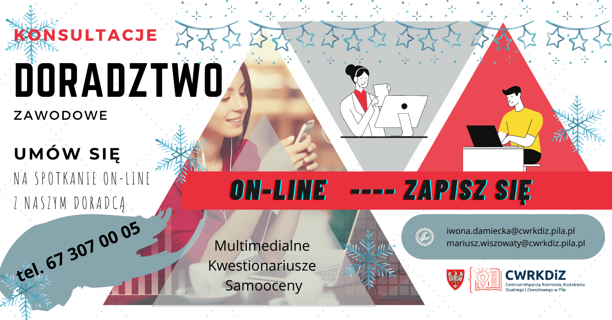 Zapraszamy na spotkanie on-line z naszym doradcą zawodowym, który pomoże rozwiać ostatnie wątpliwości co do wyboru szkoły ponadpodstawowej. Umawiajcie się na konsultacje z doradztwa zawodowego on-line.
