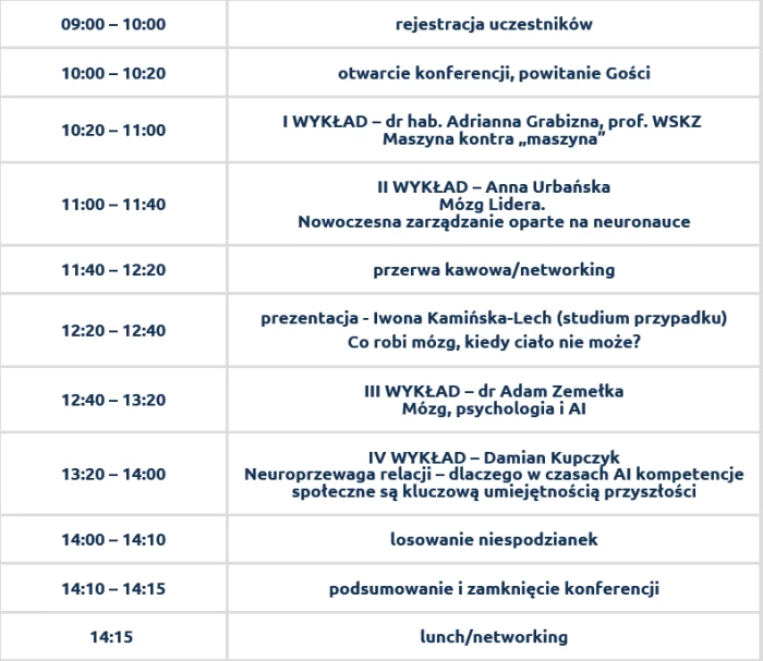 Celem przedsięwzięcia jest ukazanie, jak wiedza o funkcjonowaniu ludzkiego mózgu może wspierać rozwój jednostek, organizacji i społeczności w dynamicznie zmieniającym się, technologicznie zaawansowanym świecie. W dobie automatyzacji i rosnącej roli sztucznej inteligencji konferencja skupia się na wspieraniu unikalności człowieka – jego kreatywności, emocjonalności, zdolności do adaptacji i głębokiego myślenia. Uczestnicy poznają, jak stymulować mózg do rozwoju, uczyć się efektywniej i podejmować trafniejsze decyzje – zarówno w edukacji, pracy, jak i codziennym życiu. Wśród tematów znajdą się m.in.: neuroprzywództwo, inteligencja emocjonalna, odporność psychiczna, uczenie się w świecie cyfrowym oraz świadome korzystanie z nowych technologii. Wydarzenie ma inspirować do wspierania unikalności człowieka oraz wdrażania wiedzy o mózgu w edukacji, doradztwie, zarządzaniu, biznesie oraz codziennym życiu. Naszym celem jest stworzenie przestrzeni wymiany doświadczeń i poszukiwania odpowiedzi na pytanie: jak mądrze łączyć możliwości technologii z tym, co w człowieku najcenniejsze?