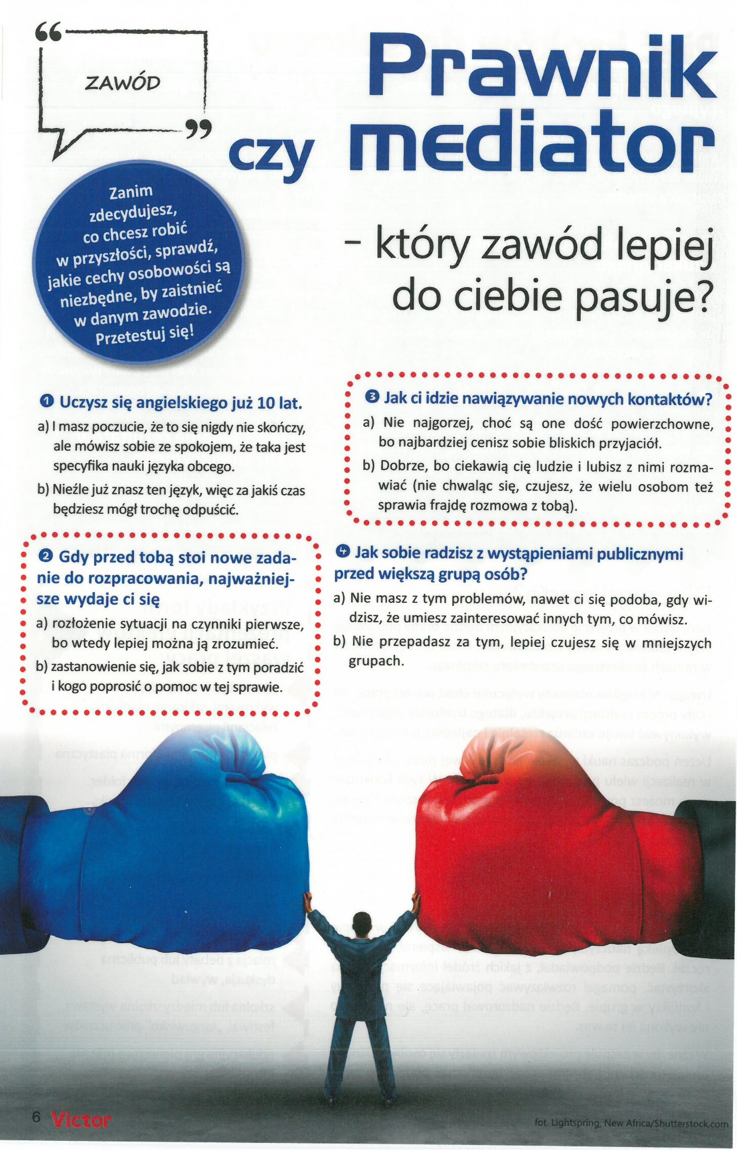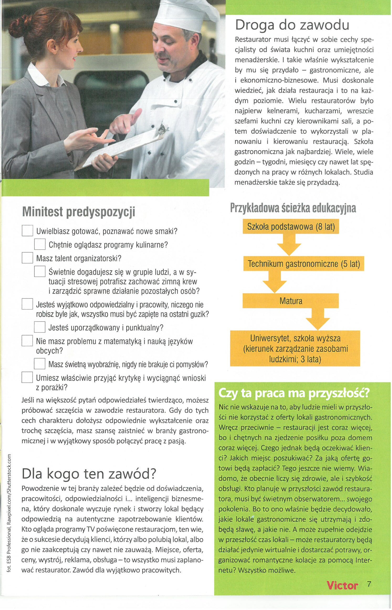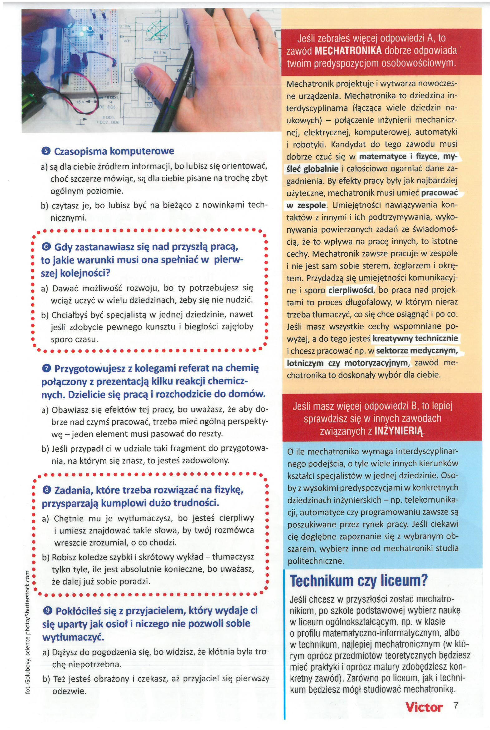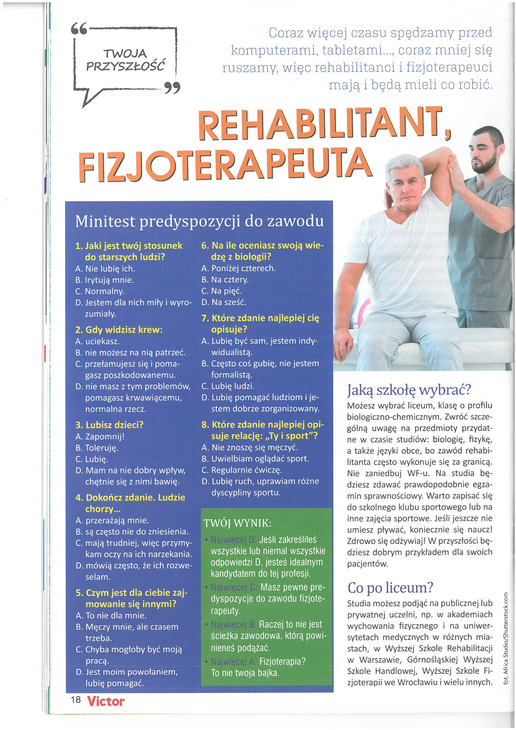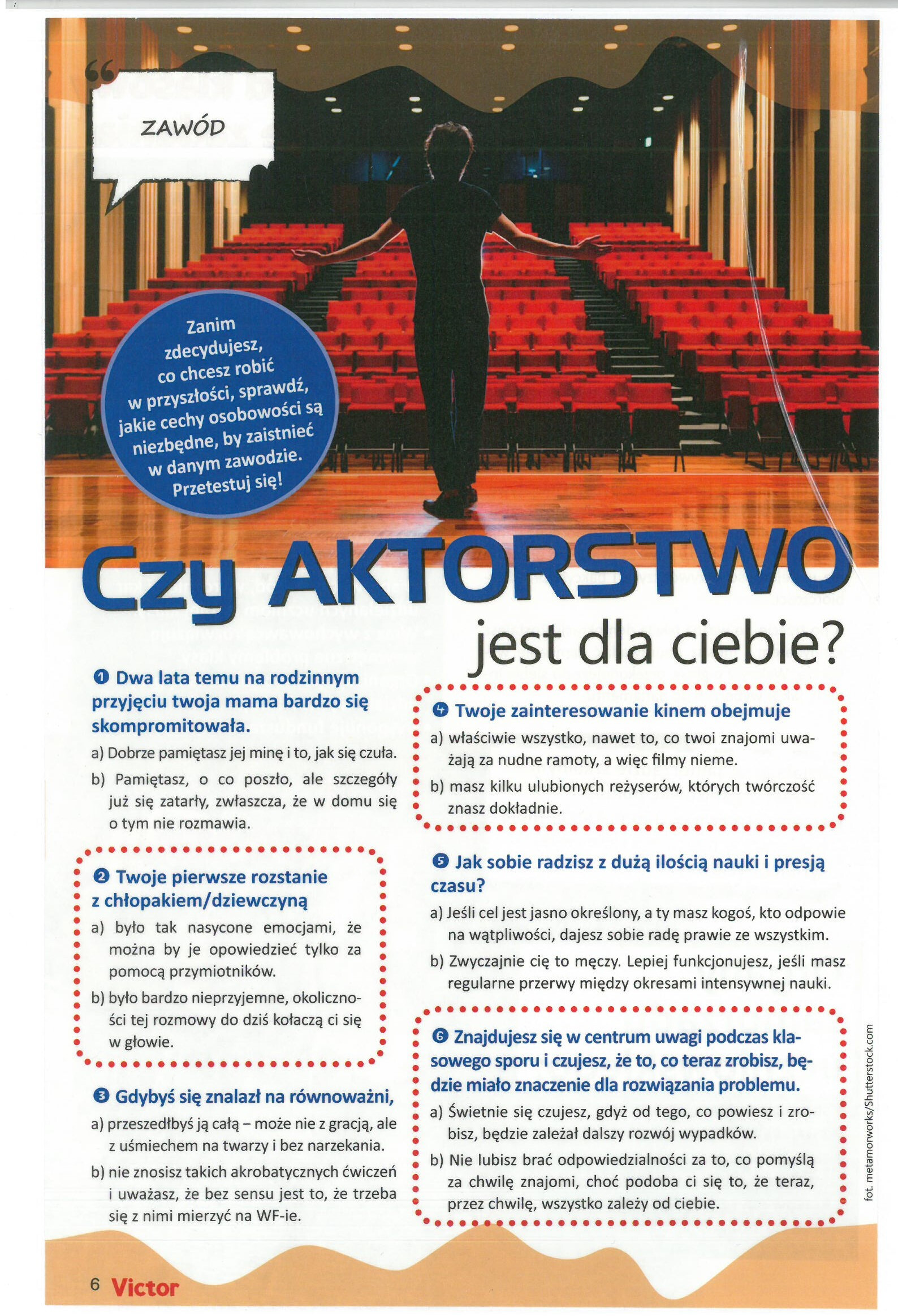 Jeśli rozważasz wybór szkoły, to mogą pomóc Ci testy predyspozycji zawodowych, które dzięki wydawnictwu Victor prezentujemy poniżej. Możesz wybrać interesujące Cię zawody umieszczone w załączonych grafikach i zrobić testy. Życzymy powodzenia i dobrej zabawy.