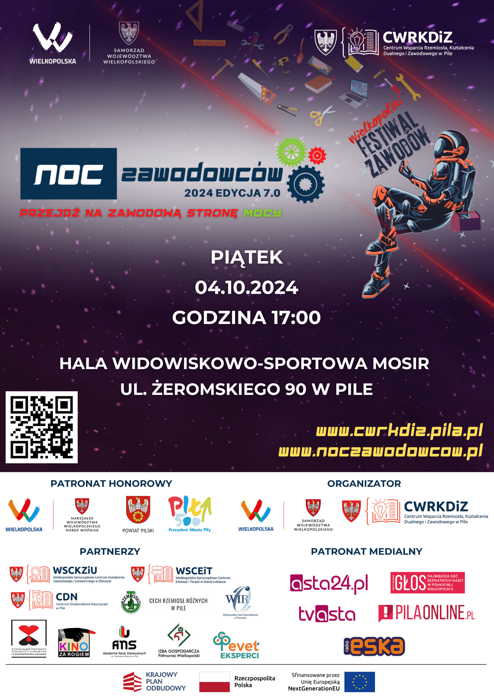 Finałem całego przedsięwzięcia będzie znana już Wielkopolanom i Wielkopolankom NOC ZAWODOWCÓW, która odbędzie się 4 października br. w pięciu lokalizacjach na terenie województwa wielkopolskiego. Hasło tegorocznej imprezy brzmi: „PRZEJDŹ NA ZAWODOWĄ STRONĘ MOCY”. To już 7. edycja tego wydarzenia, która na stałe wpisała się w kalendarz imprez regionalnych.