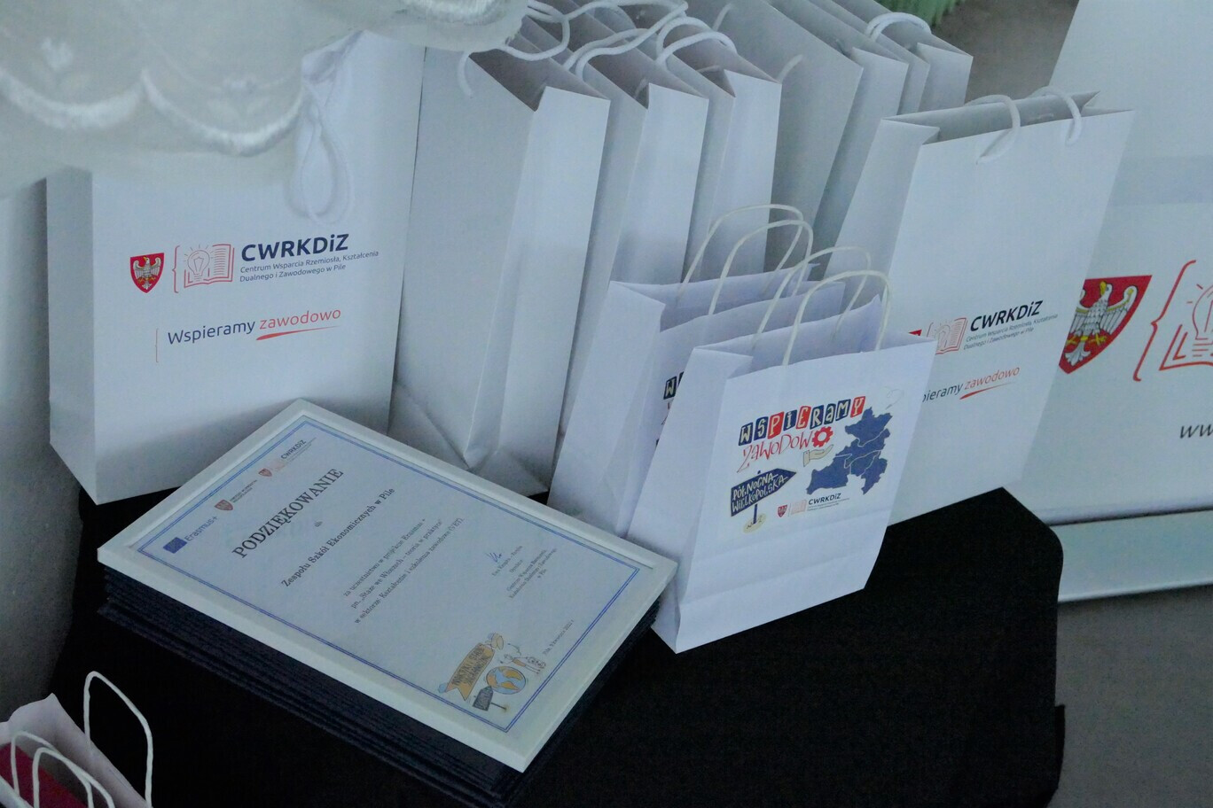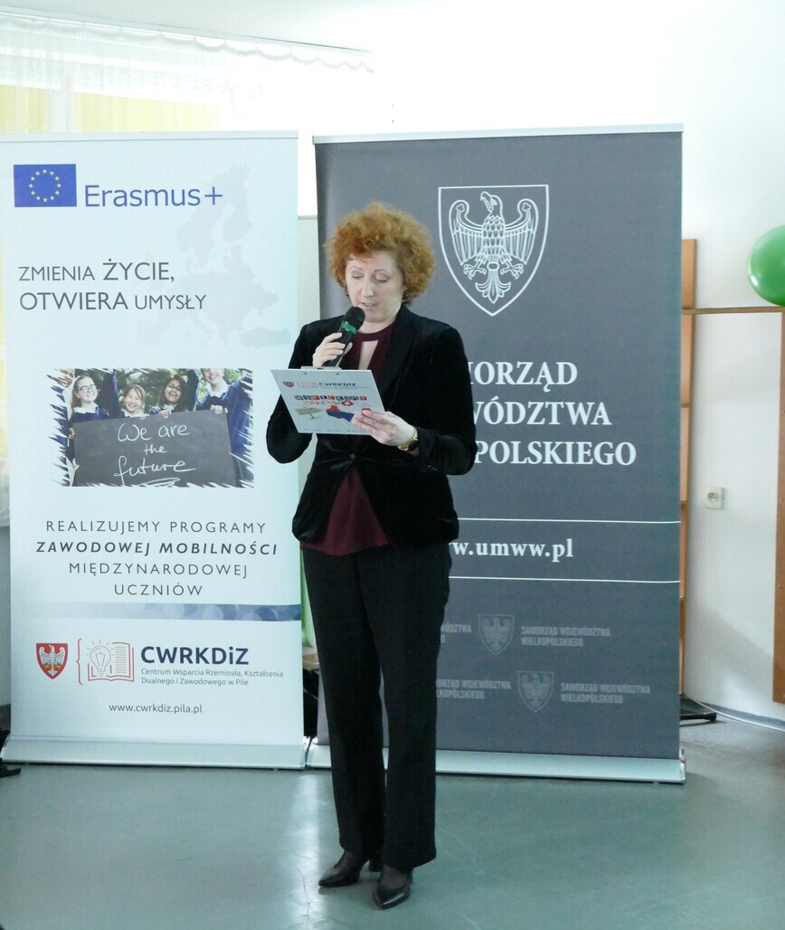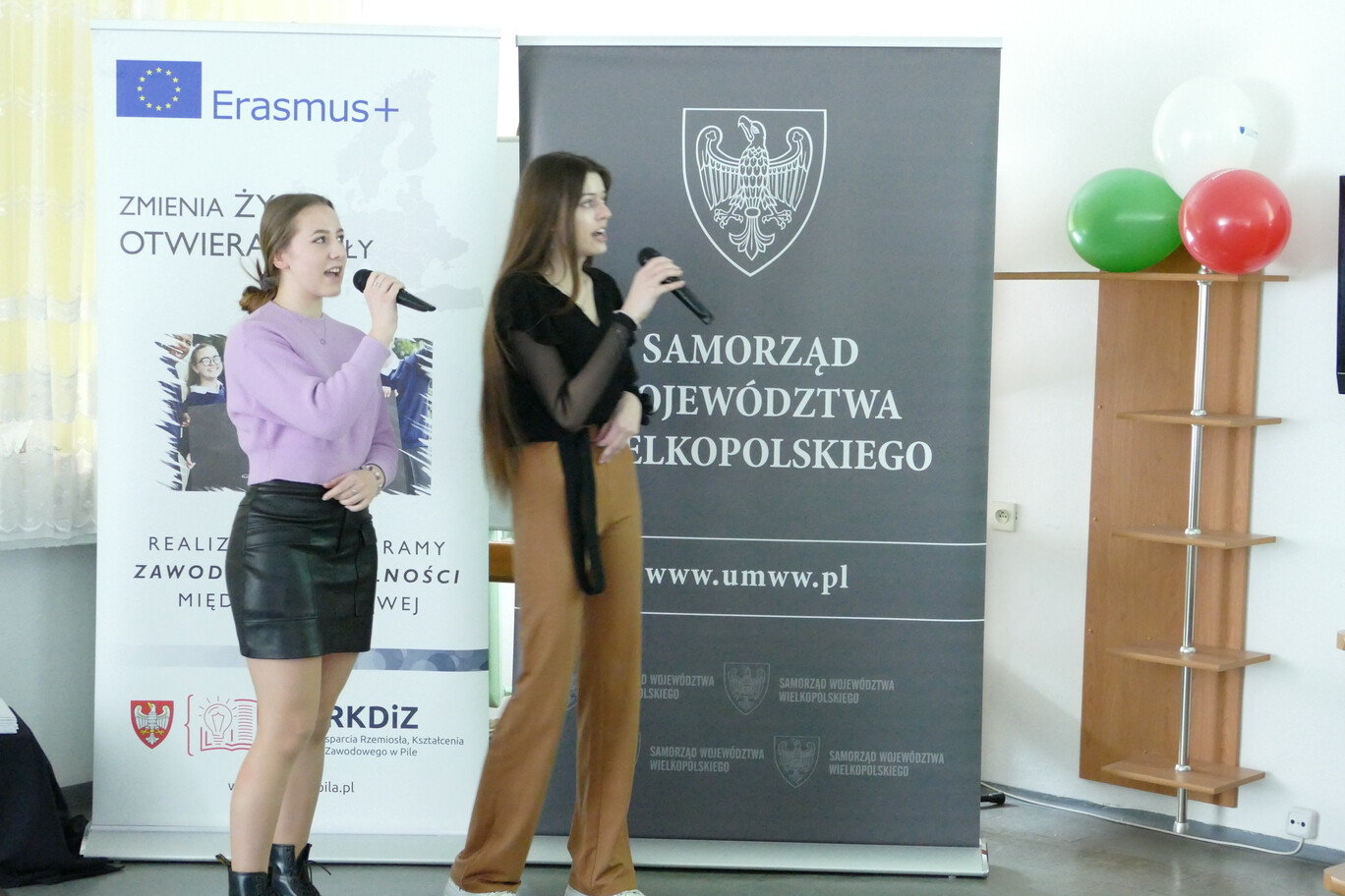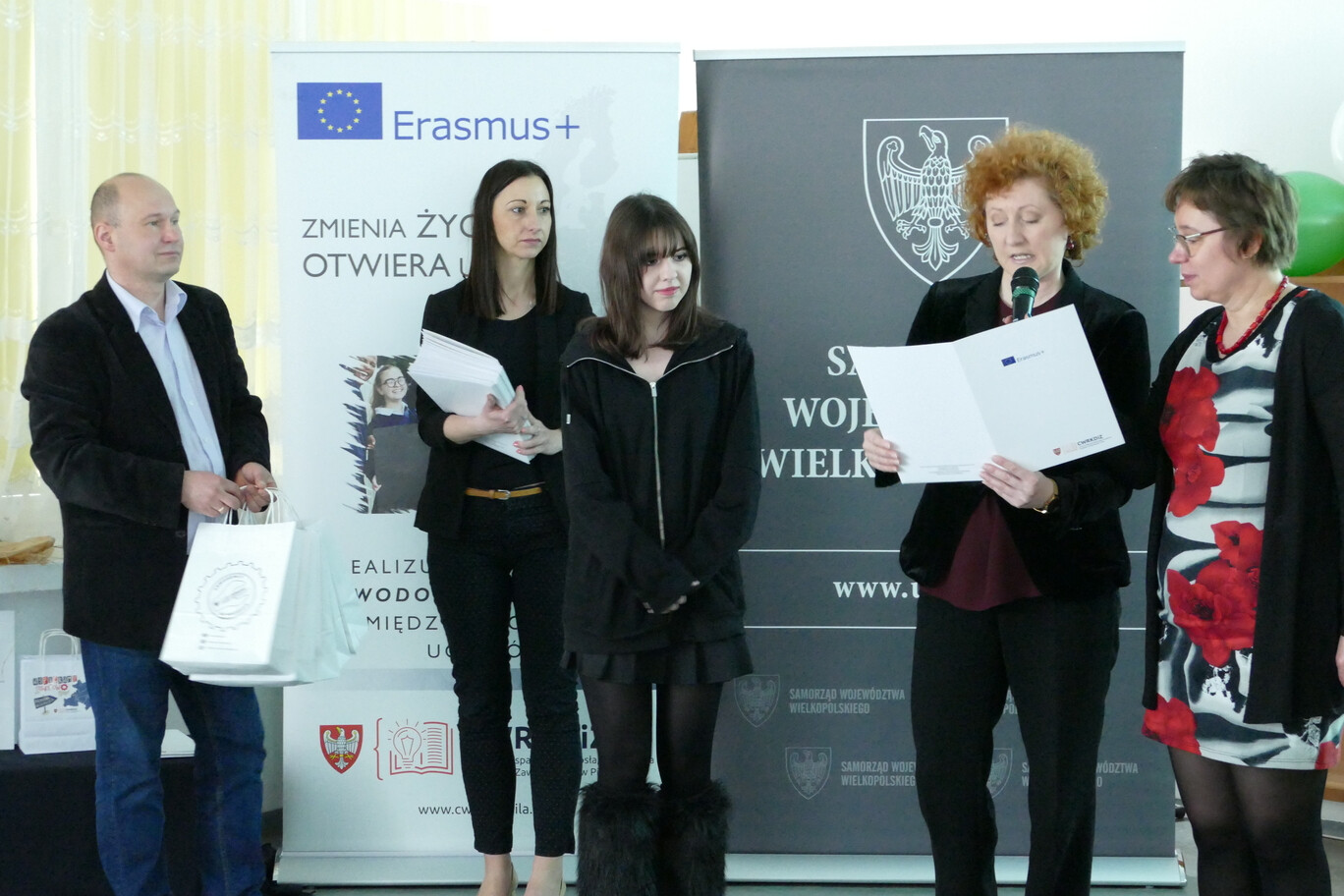 Podczas Dnia Włoskiego w dniu 09.04.2022 r. Dyrektor CWRKDiZ w Pile Ewa Krupka-Zaręba wręczyła uczniom zaświadczenia o udziale w projekcie. Przekazano podziękowania instytucji i organowi prowadzącemu szkołę a także osobom bezpośrednio zaangażowanym w realizację wyjazdu, a byli to m.in. – Dyrektor ZSE Pani Magdalena Michalska, opiekunowie grupy uczniów: Pani Anna Michalska, Pan Henryk Liszkiewicz, Pan Marek Kamiński (jednoczesny Członek Zarządu Powiatu) oraz szkolny koordynator projektu Pani Anita Taterka.
