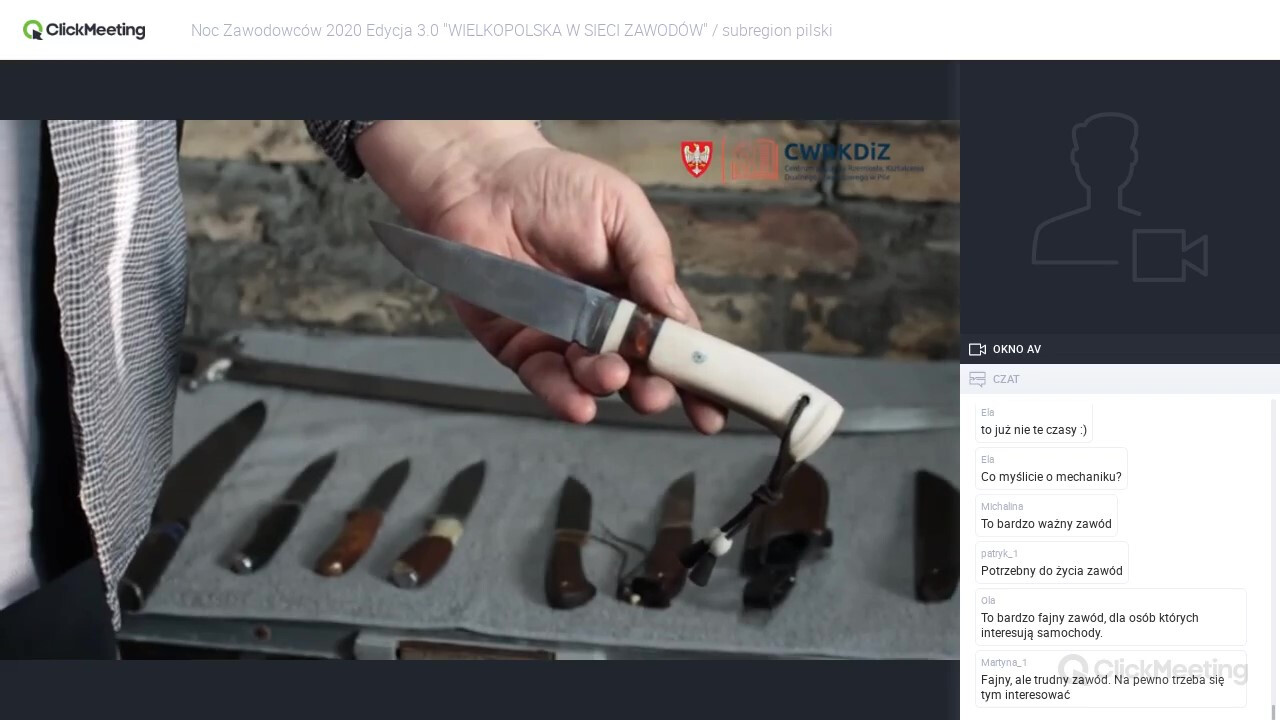 W serii filmów „Zawodowcy poszukiwani” tak uczniowie, jak i pozostali widzowie spotkali się z pracodawcami i przedsiębiorcami opowiadającymi o swoim zawodzie, o możliwości nauki zawodu w ich zakładzie lub o zawodowej pasji. Przekrój fachowców był szeroki – od barbera, poprzez tapicera, rymarza, hafciarkę po mechanika, ślusarza czy piekarza. Rodzice podczas webinaru nt. skutecznego komunikowania się poznali metody na poprawę komunikacji z dzieckiem, tak aby rozmowy w trudnych czasach, o trudnych wyborach młodzieży były łatwiejsze.