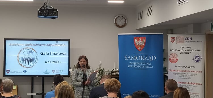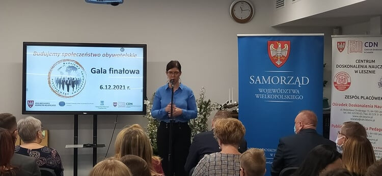 Wydarzenie podsumowało projekt „Budujemy Społeczeństwo Obywatelskie”, a odbyło się z udziałem Pani Pauliny Stochniałek - Członek Zarządu Województwa Wielkopolskiego oraz Doroty Kinal - Dyrektor Departamentu Edukacji i Nauki UMWW.