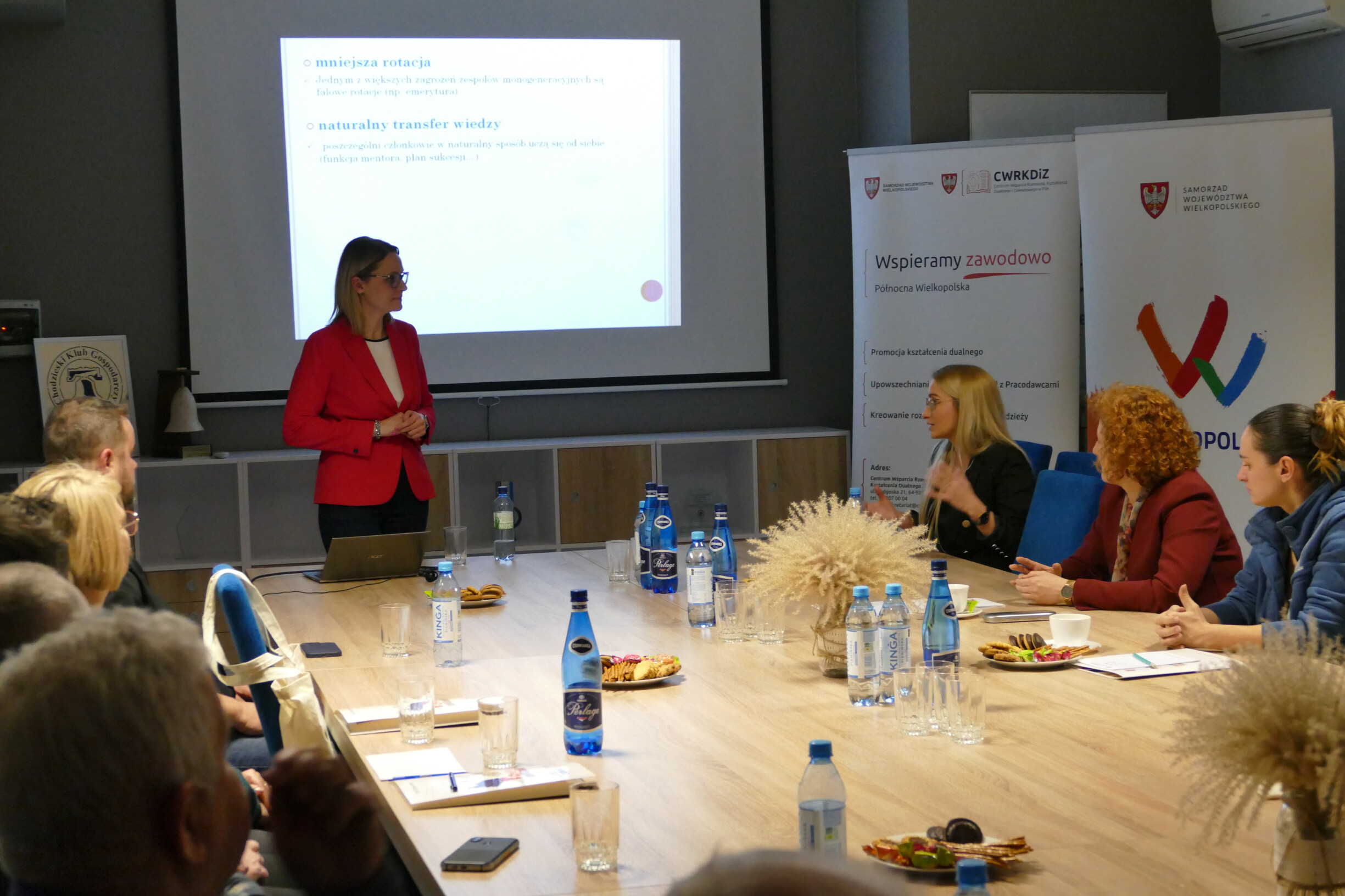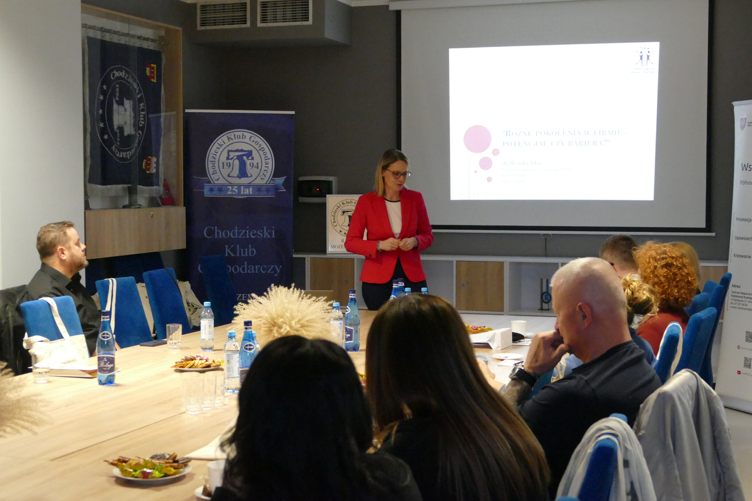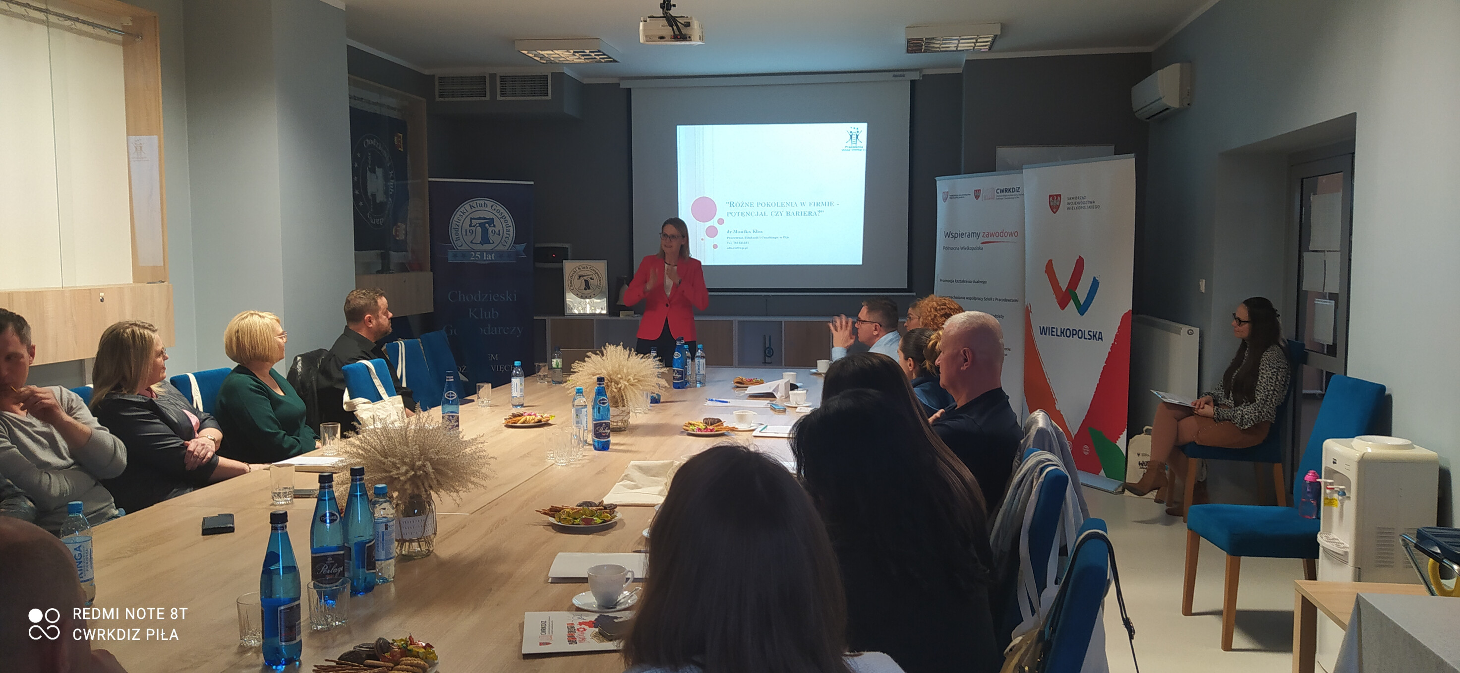 Podczas spotkania poruszany był temat różnych pokoleń współpracujących ze sobą w przedsiębiorstwach. Dokonano ich charakterystyki, wskazano wartości, jakimi kierują się przedstawiciele danego pokolenia. Podkreślono ogromną istotę kompetencji miękkich, tak cenionych teraz przez pracodawców oraz rolę wzajemnego szacunku do siebie.