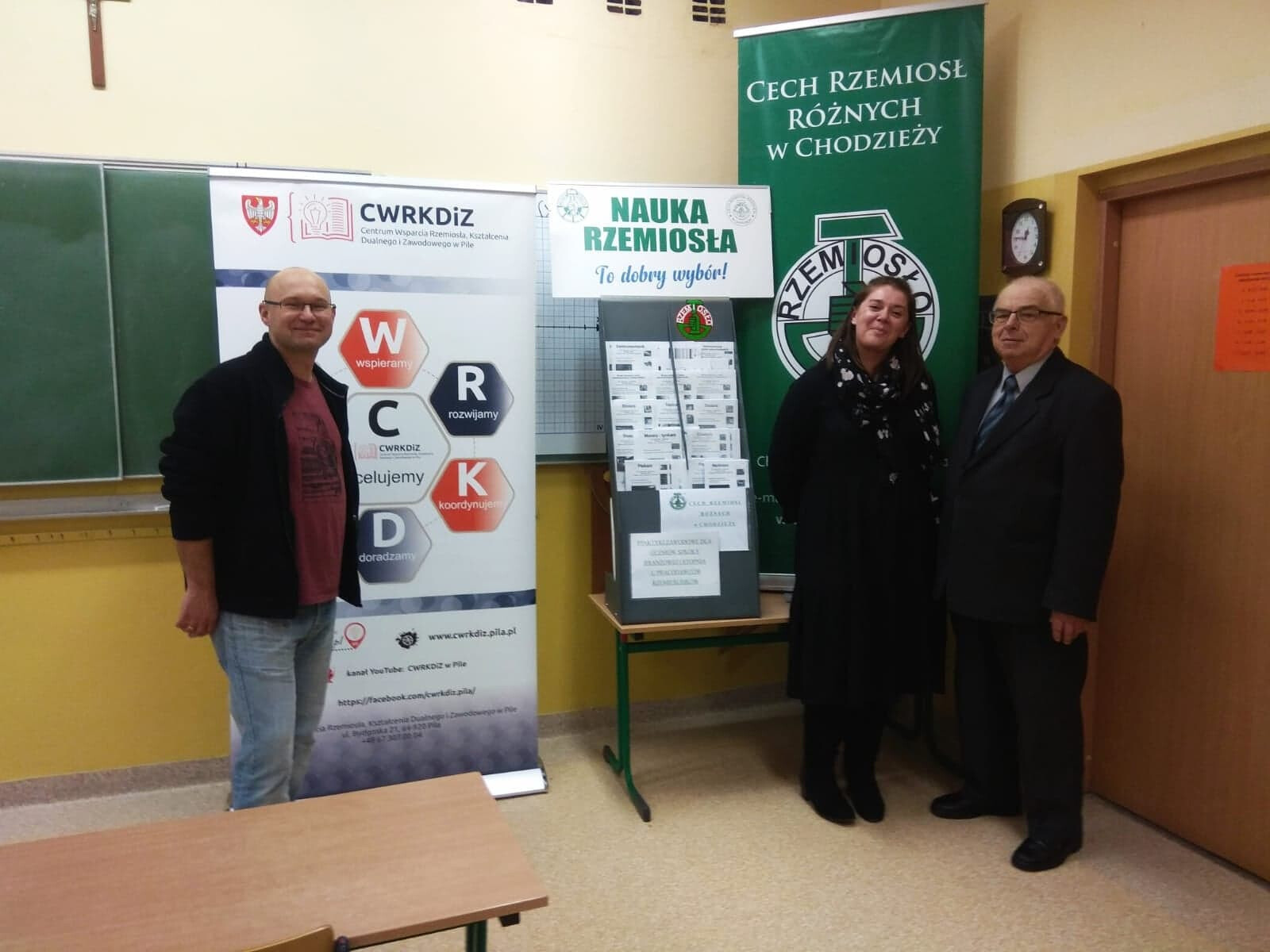 Cykl takich informacyjnych spotkań rozpoczęła wizyta 17.02.2020 r. w Szkole Podstawowej w Lipiej Górze przedstawicieli Cechu Rzemiosł Różnych z Chodzieży oraz doradcy zawodowego naszego Centrum.