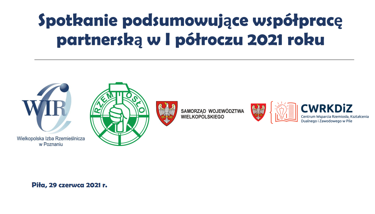 Mieliśmy przyjemność spotkać się w przestrzeni on-line z przedstawicielami Cechów Rzemiosł Różnych z terenu Północnej Wielkopolski, aby podsumować pierwsze półrocze 2021 naszych wspólnych działań z Rzemiosłem. Był to czas nowych wyzwań, które obie strony wykorzystały w najlepszy sposób. Pojawiły się przemyślenia, uwagi, a także propozycje i pomysły na dalsze przedsięwzięcia. Dziękujemy za to kolejne półrocze, a sobie nawzajem życzymy udanych wakacji i letniego czasu.