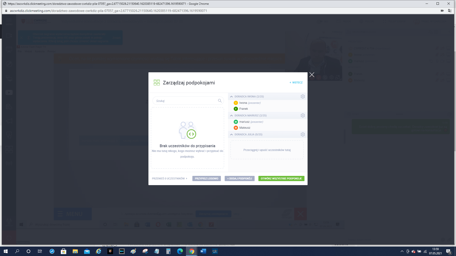Przez dwa dni Targów Edukacyjnych trzej doradcy zawodowi Centrum byli do dyspozycji i udzielali porad przede wszystkim uczniom klas 7 i 8 szkół podstawowych, i szkół ponadpodstawowych, oraz osobom dorosłym potrzebującym wsparcia w obszarze planowania swojej ścieżki zawodowej. Przeprowadzono dwa webinary.
