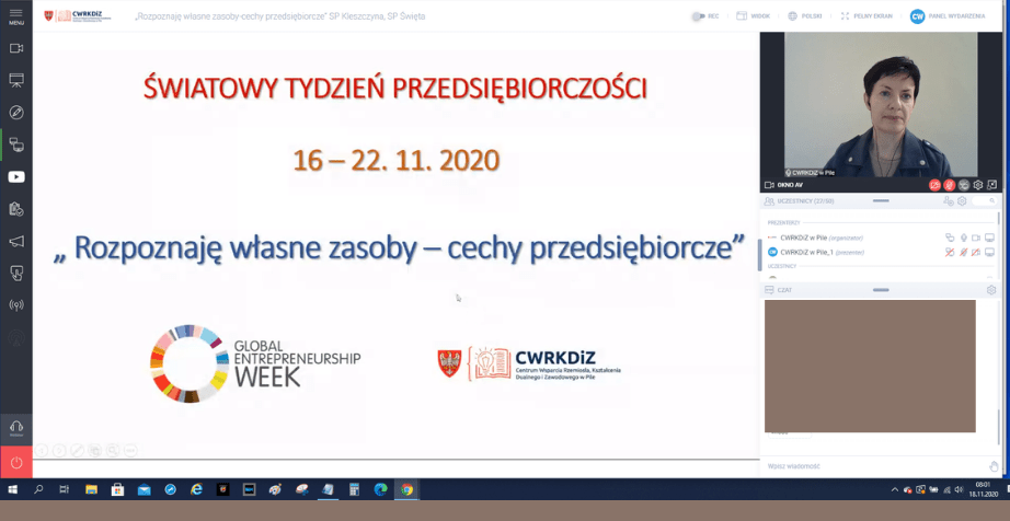 W pierwszej części warsztatu uczniowie zapoznali się z postawami przedsiębiorczymi przedstawionymi w formie rebusów. W drugiej części rozwiązywali test „Czy jesteś osobą przedsiębiorczą?". Na zakończenie zajęć prowadząca warsztat przybliżyła w skrócie uczestnikom jednostkę #CWRKDiZ w Pile zachęcając do korzystania z materiałów i narzędzi pomocnych w rozpoznawaniu własnych zasobów podczas planowania kariery zawodowej. Bardzo dziękujemy za możliwość przeprowadzenia zajęć i aktywność mimo wczesnej godziny