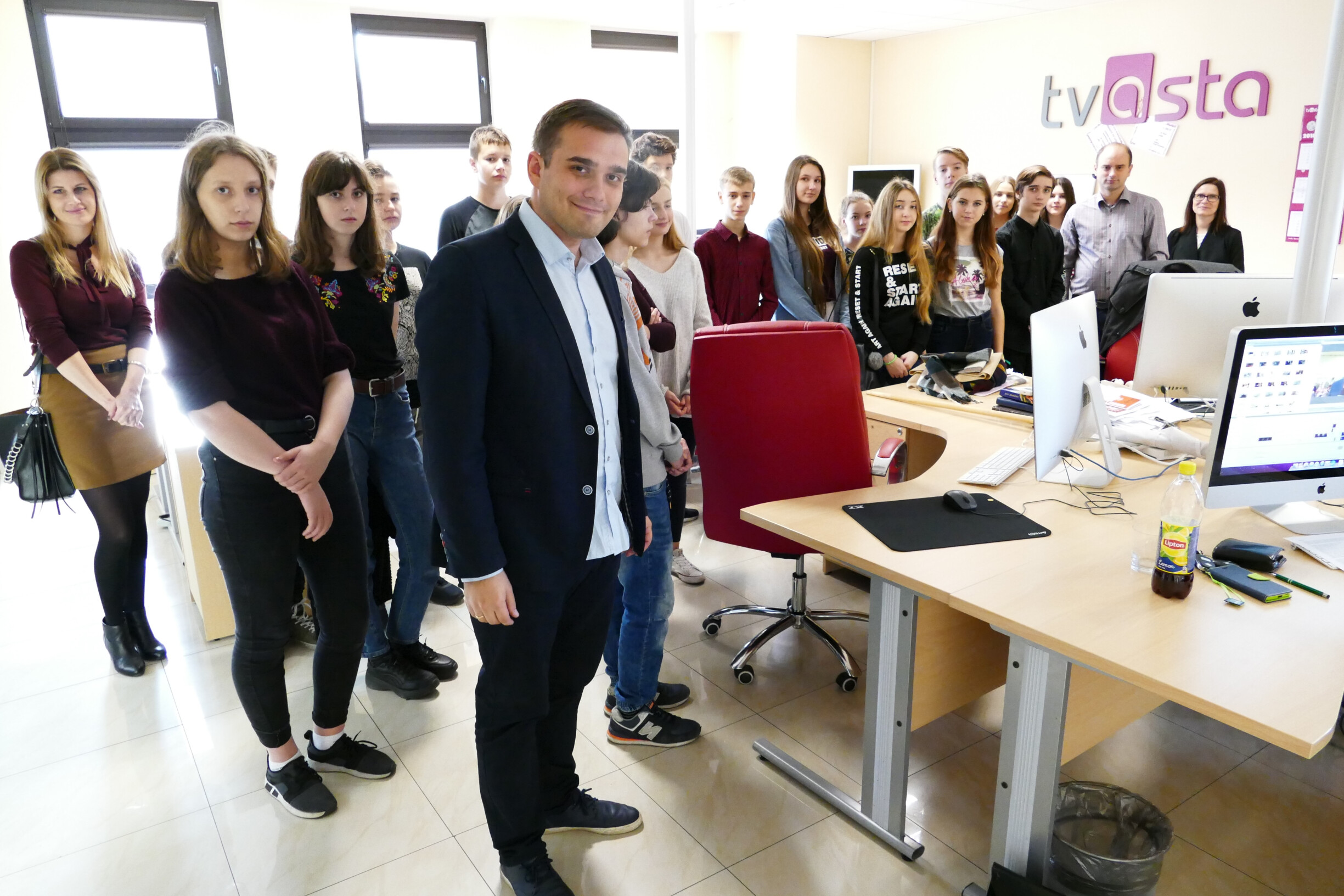 Uczniowie mieli możliwość odbyć „spacer” po zakamarkach telewizji i poznać zaplecze jej działania. Pan Paweł Różycki Dyrektor Programowy oprowadził i omówił stanowiska pracy jakie funkcjonują w firmie.