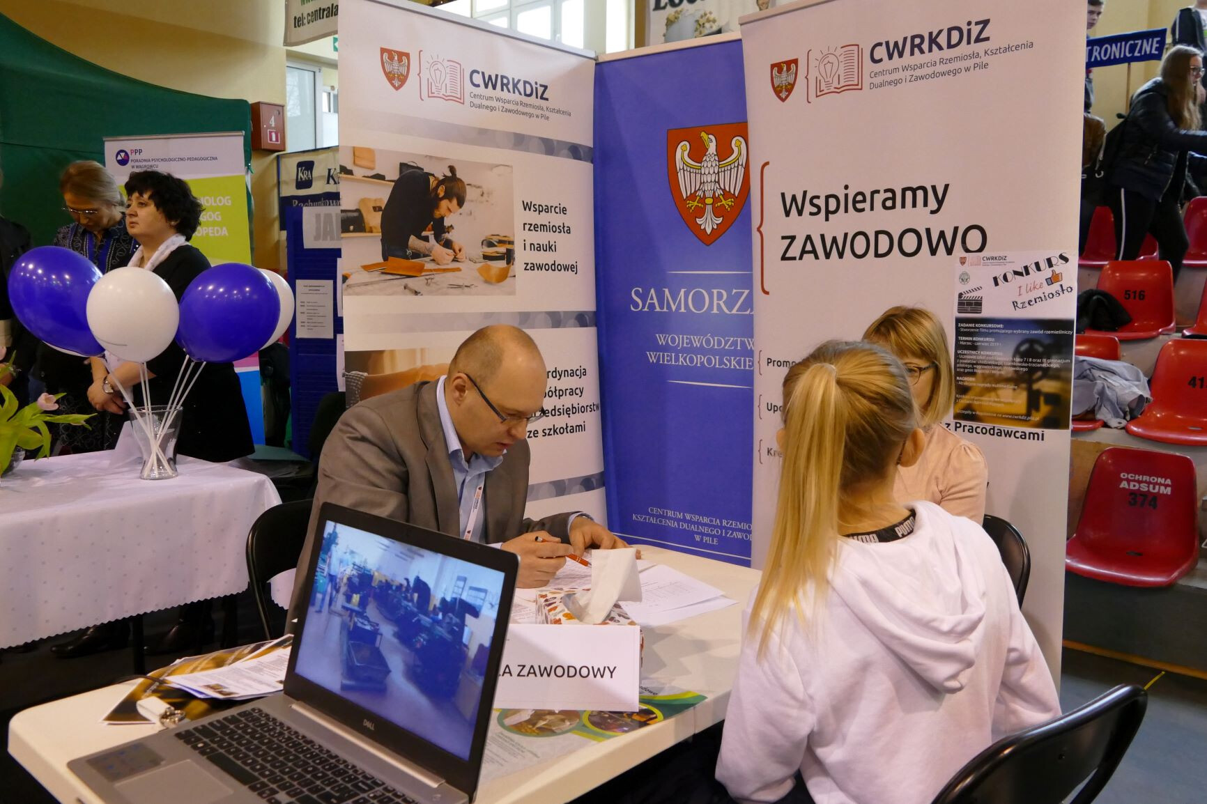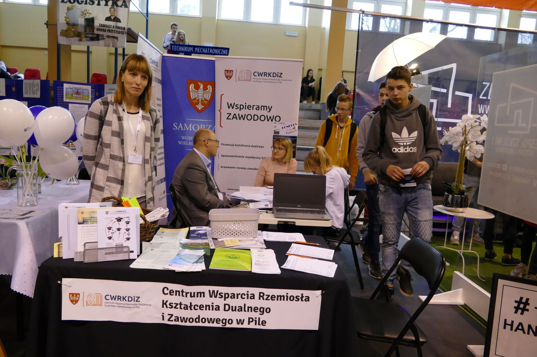 CWRKDiZ w Pile przedstawiło ofertę szkół branżowych i technicznych powiatu wągrowieckiego – wszystkie kierunki kształcenia, dane kontaktowe do szkół oraz prezentowało młodzieży schemat szkolnictwa po reformie. Promowało także kształcenie dualne w zawodach i zakładach rzemieślniczych, które prowadzi Cech Rzemiosł Różnych w Wągrowcu poprzez swoją Rzemieślniczą Szkołę Branżową I Stopnia w Wągrowcu. Pracownicy Centrum przybliżyli młodzieży informacje z rynku pracy w powiecie wągrowieckim na podstawie Barometru Zawodów, akcentując zapotrzebowanie na zawody deficytowe rejonu, a także przeprowadzili ankietę dotyczącą zainteresowań młodzieży kierunkami edukacji i czynników decydujących o wyborze ścieżki edukacyjno-zawodowej. Miała miejsce także promocja Centrum – przedstawiane były w formie filmów realizowane działania i wydarzenia popularyzujące kształcenie zawodowe i dualne. Młodzież aktywnie rozwiązywała również krzyżówkę zawodową i quiz w tematyce edukacji zawodowej, za które otrzymywała drobne upominki.