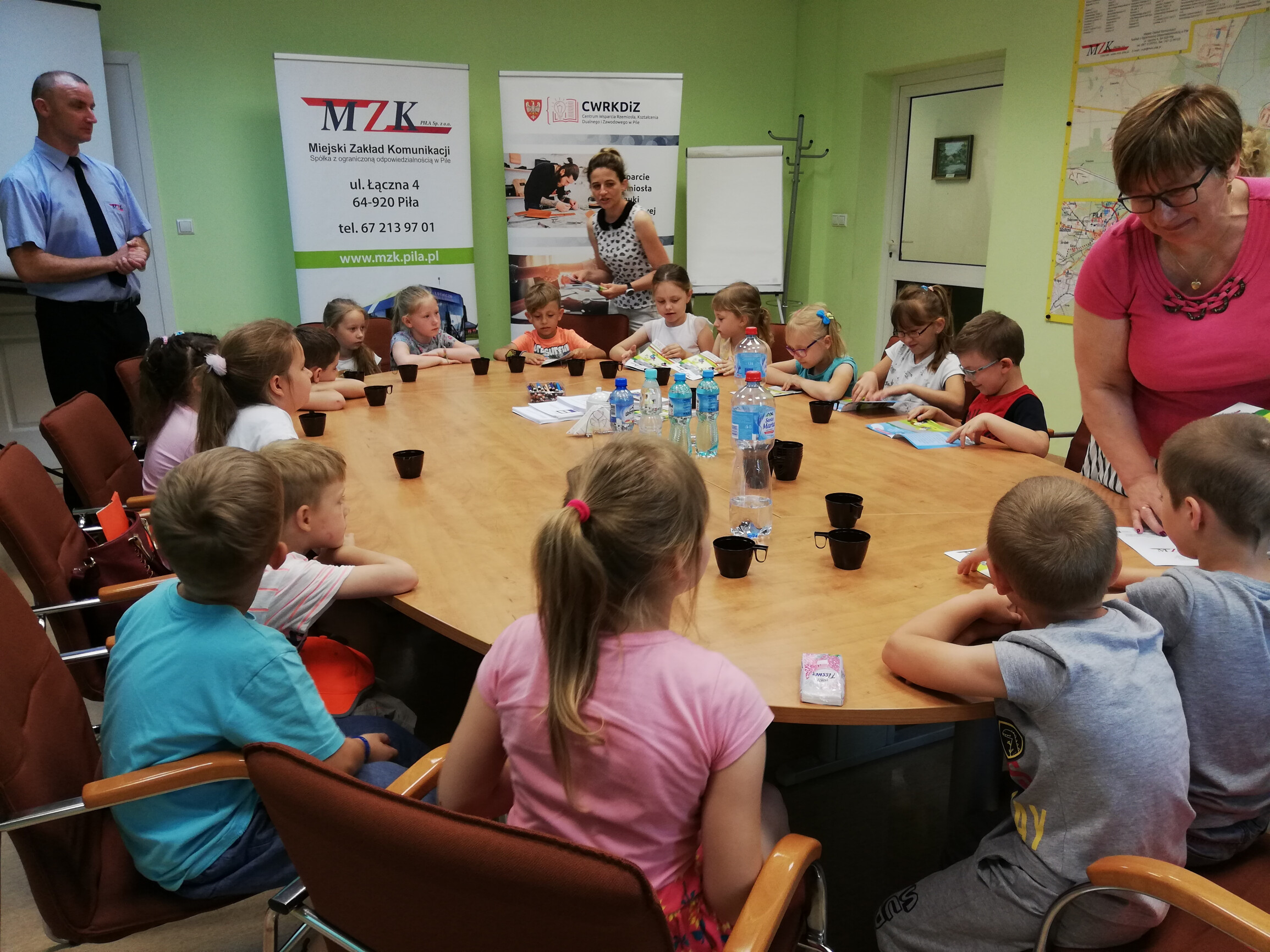 Pan Sławek – kierowca w MZK Piła - opowiadał o swoim zawodzie, czego on wymaga, jakie są zalety bycia kierowcą oraz o przeciętnym dniu kierowcy. Tłumaczył m.in. jakie cechy powinien mieć kierowca, jak ważny i potrzebny jest to zawód oraz co to jest autobus hybrydowy. W MZK była możliwość dokładnego obejrzenia autobusu, jego ogromnego silnika, a nawet dzieci mogły usiąść na chwile za kierownicą pojazdu.